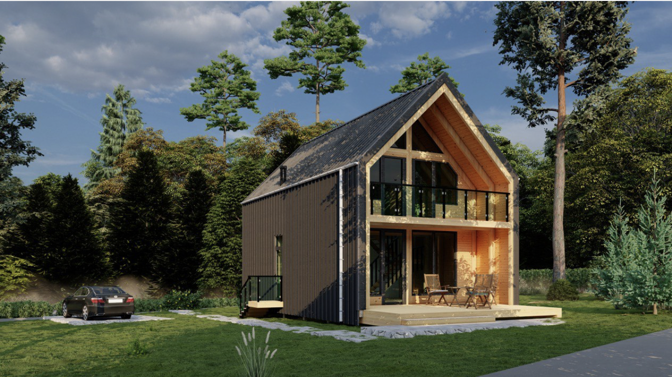 Двухэтажный деревянный дом А-128 из клееного бруса по технологии ФАХВЕРК идеален для проживания семьи из 3-5 человек. Дом имеет размеры 6х13,5 - он идеален для узких участков, участков с уклоном и прекрасными видами из окон.